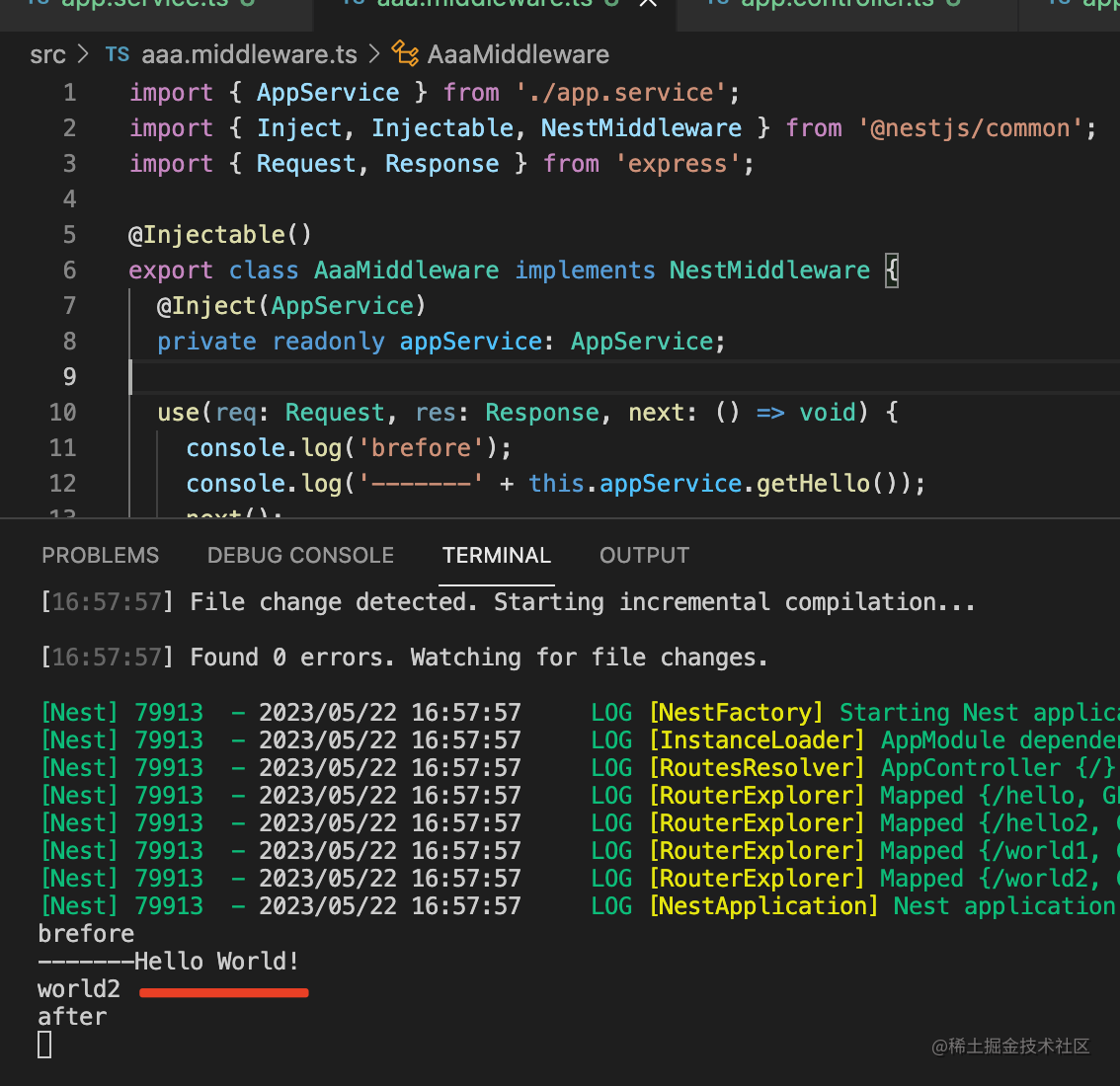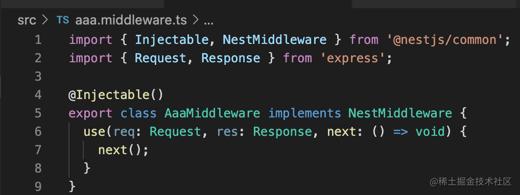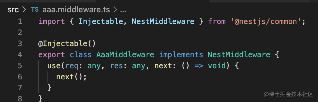 nest g middleware aaa --no-spec --flat创建个 middleware: