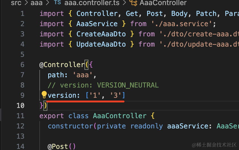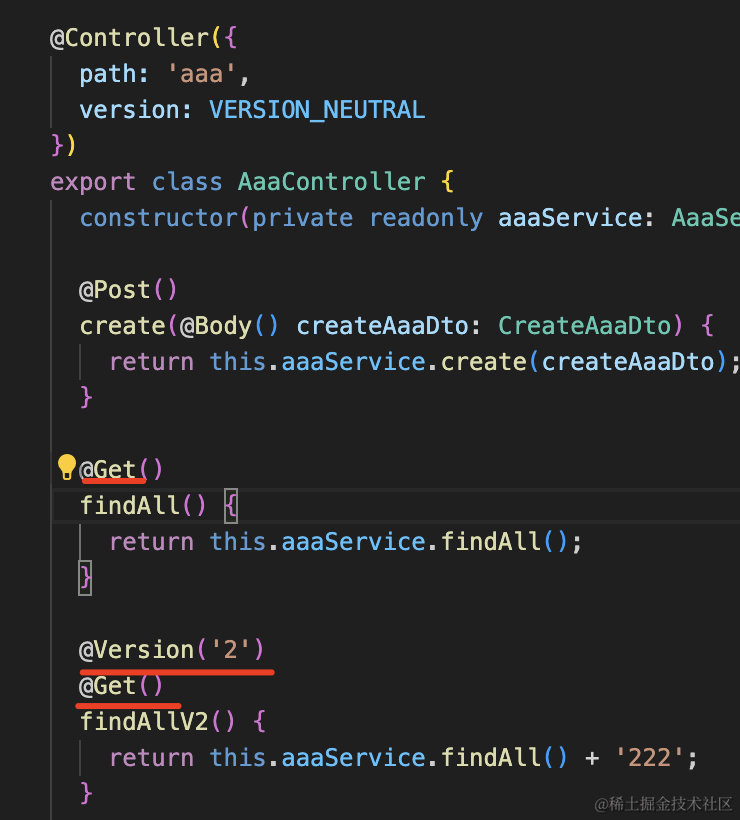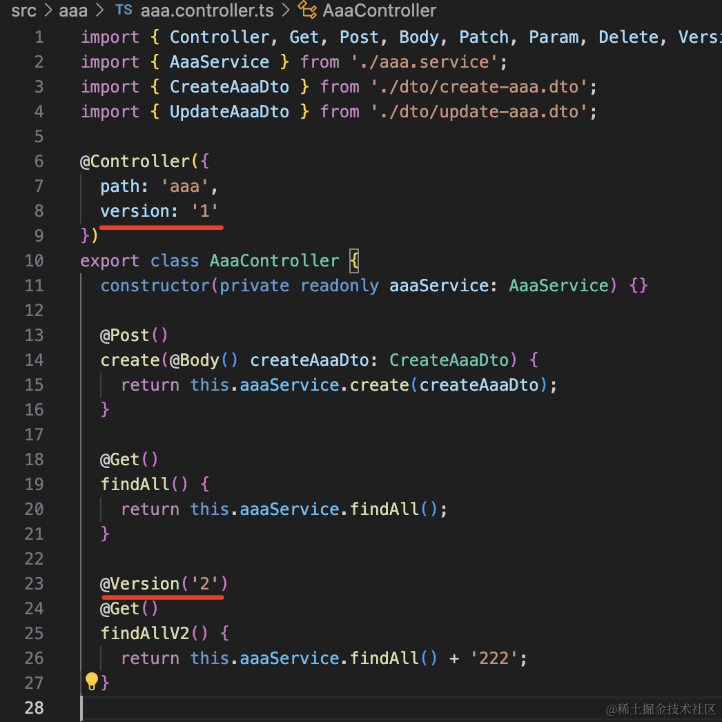 把 AaaController 里 version 2 的接口删掉,移到这里来: