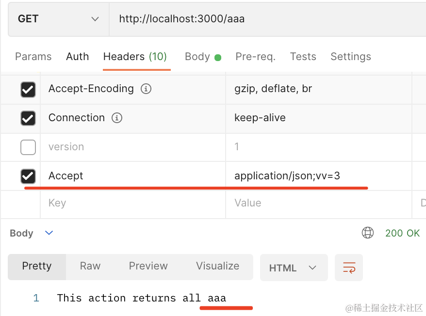 可以看到,带上 version:1 的 header,访问的就是版本 1 的接口。