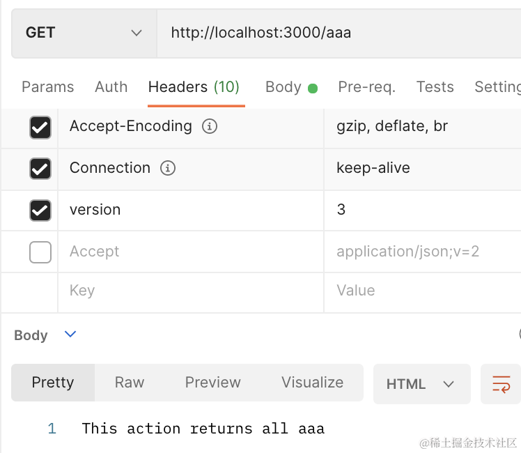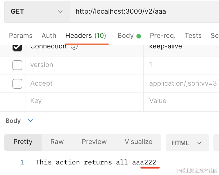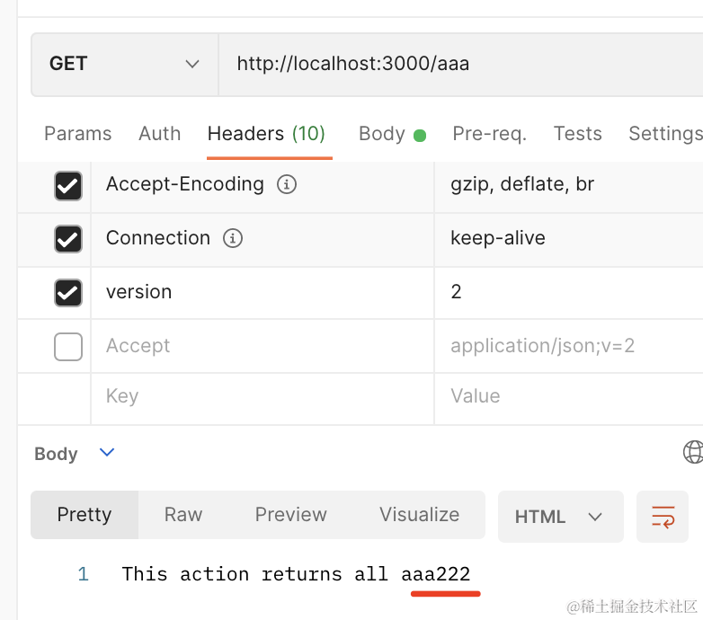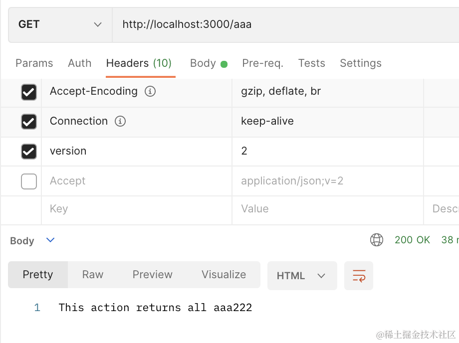 Nest 内置了这个功能,同一个路由,指定不同版本号就可以调用不同的接口。