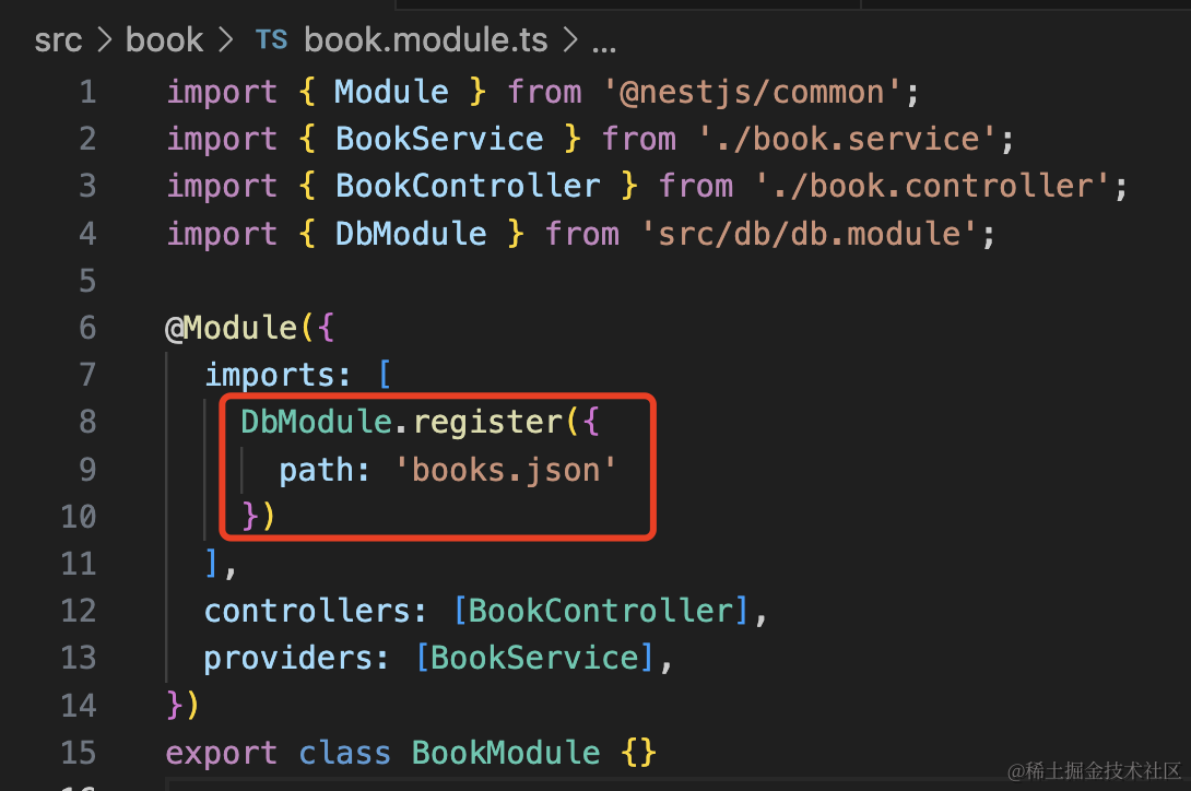 感受到封装 DbModule 为动态模块的意义了么?用的时候可以传入不同的参数,动态改变模块的内容。