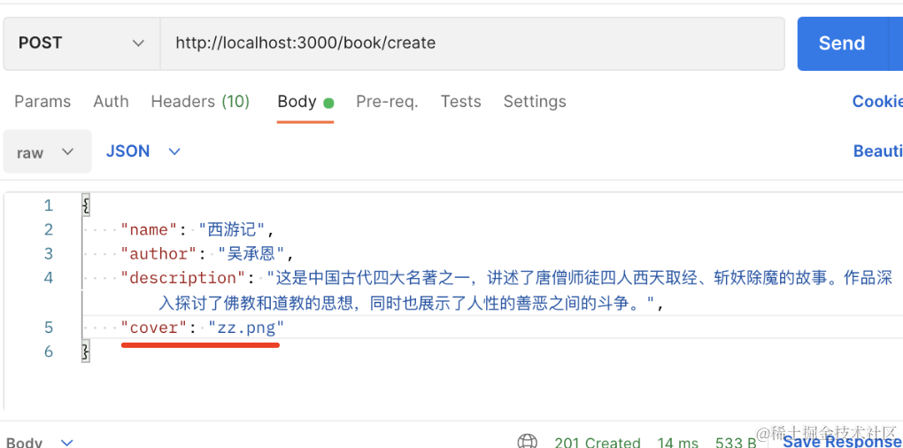 然后上传完文件,把返回的文件路径作为 cover 字段的值传上去就可以了: