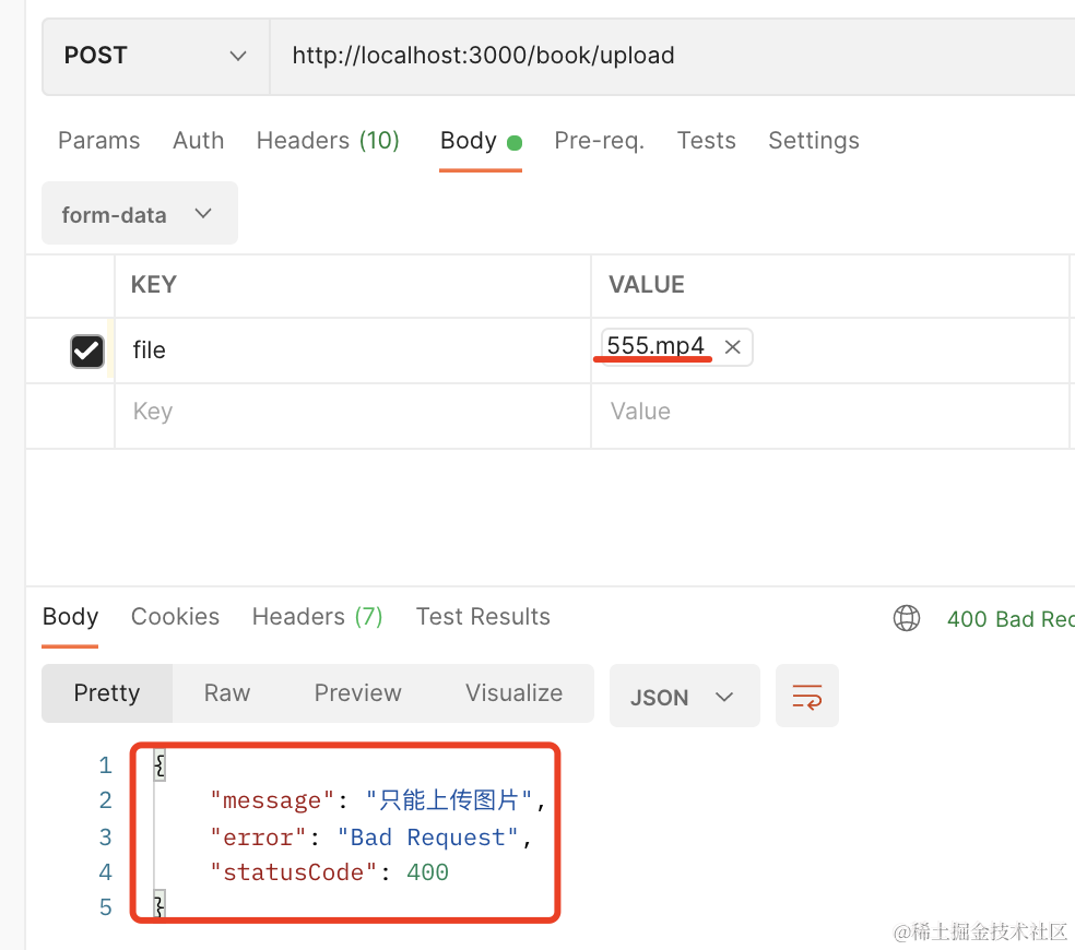 当你传的不是图片的时候,会返回 400 响应: