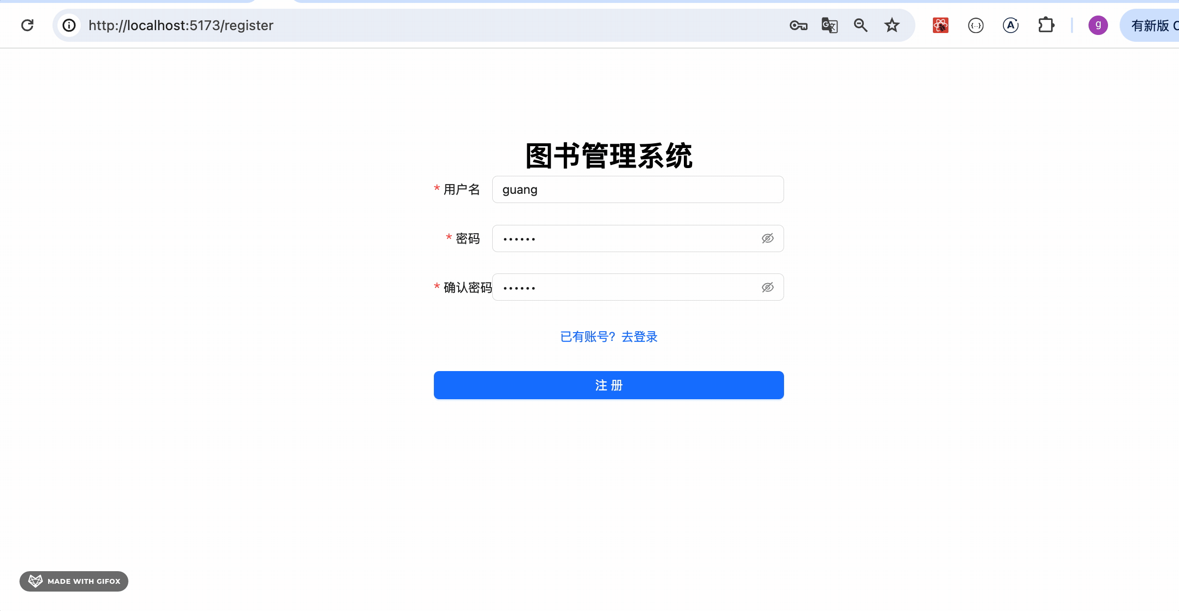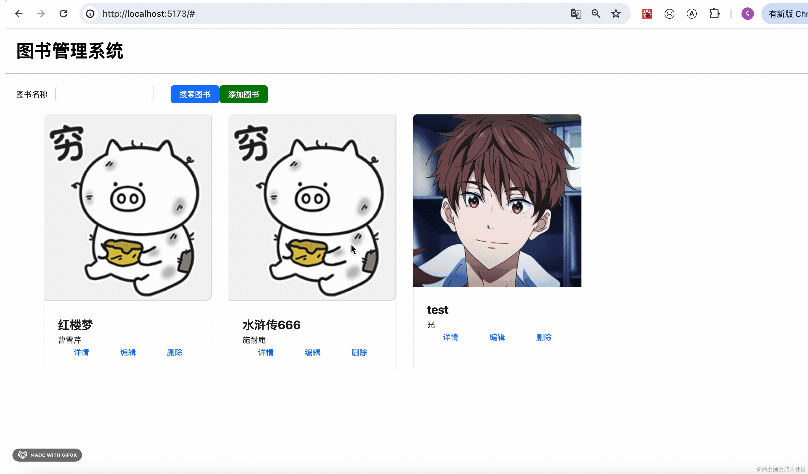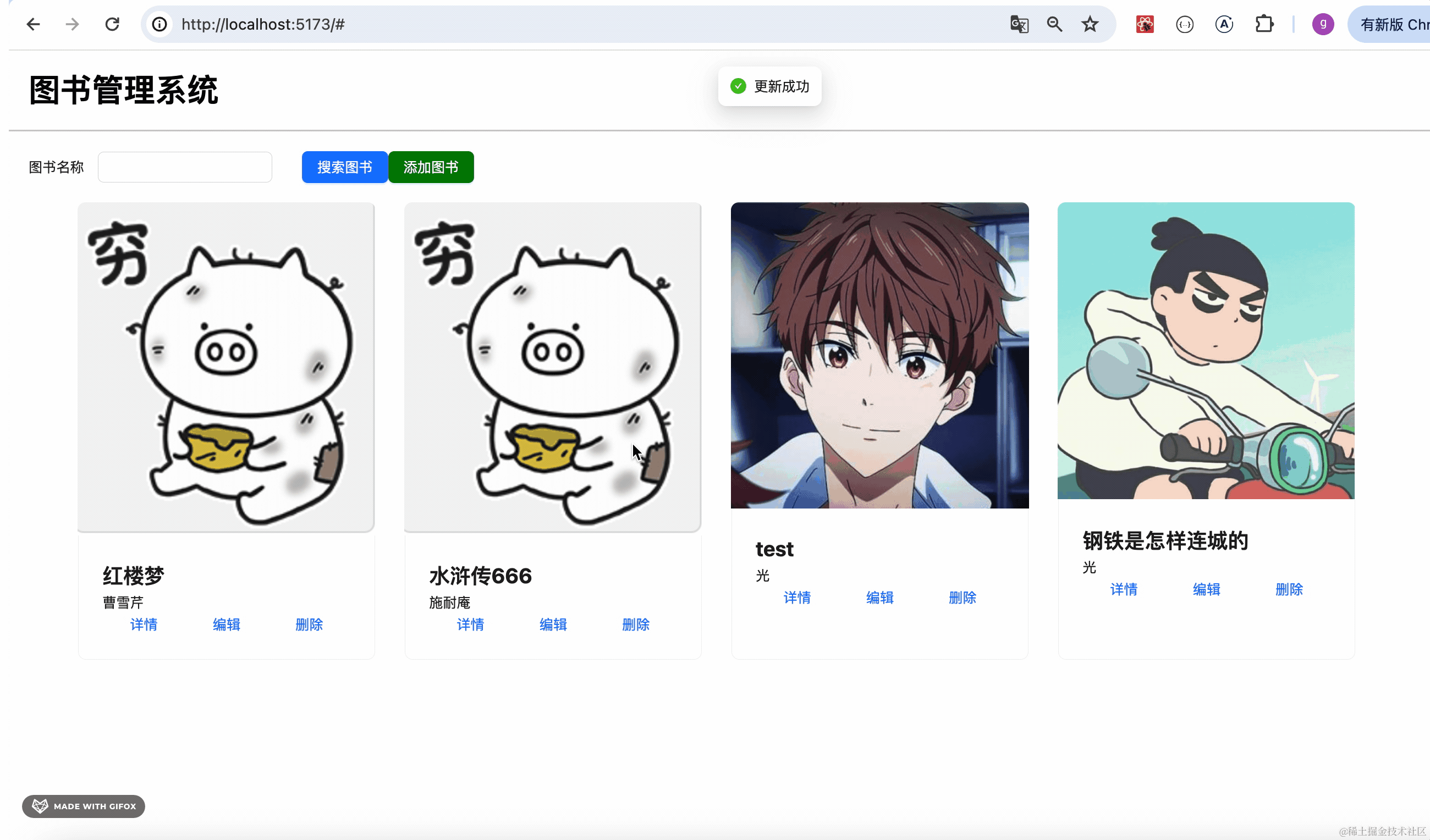 对接后端接口实现了登录、注册、图书管理页面。