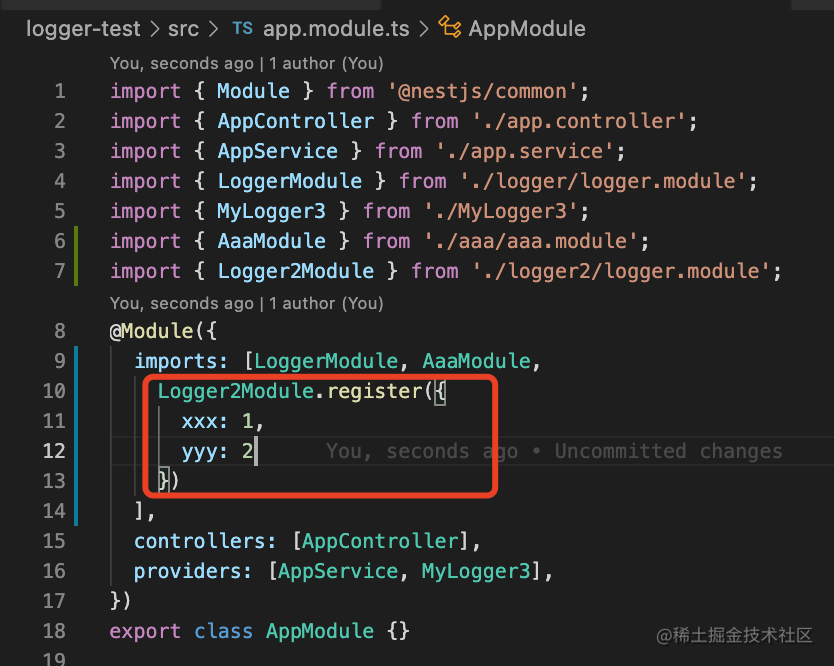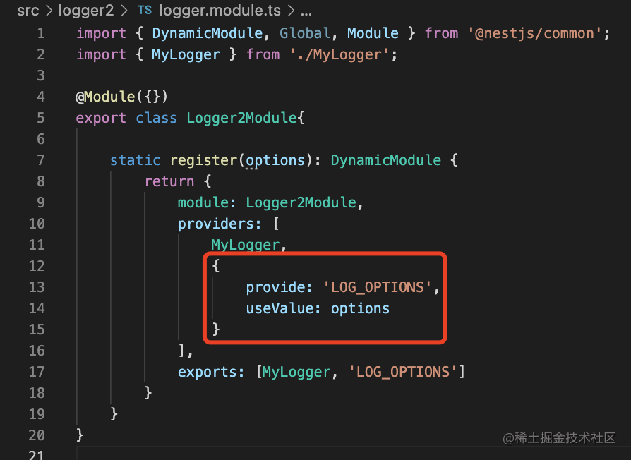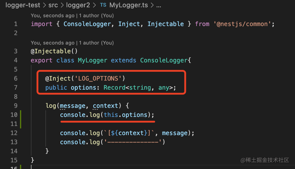 }把传入的 options 作为 provider,在 Logger 里注入: