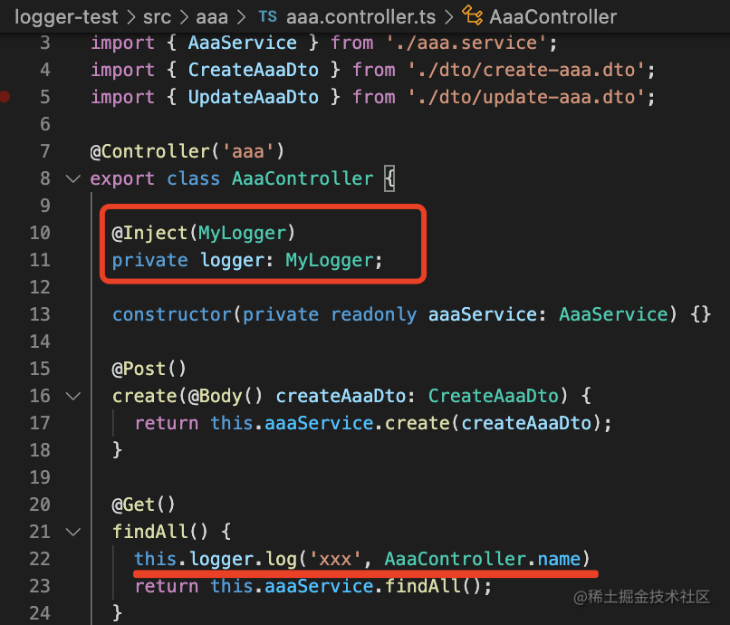 @Inject(MyLogger)