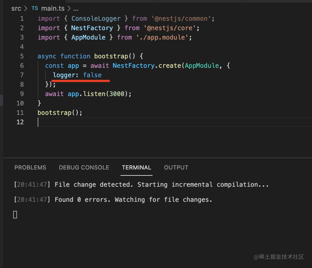 这个日志是受 Nest 控制的,可以在创建应用的时候指定是否开启:
