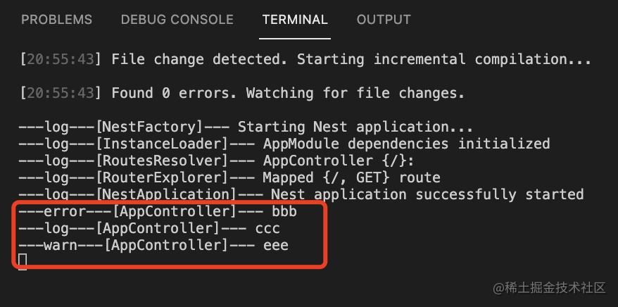 其实 Nest 提供了打印日志的 api,这节我们就来学习一下吧。