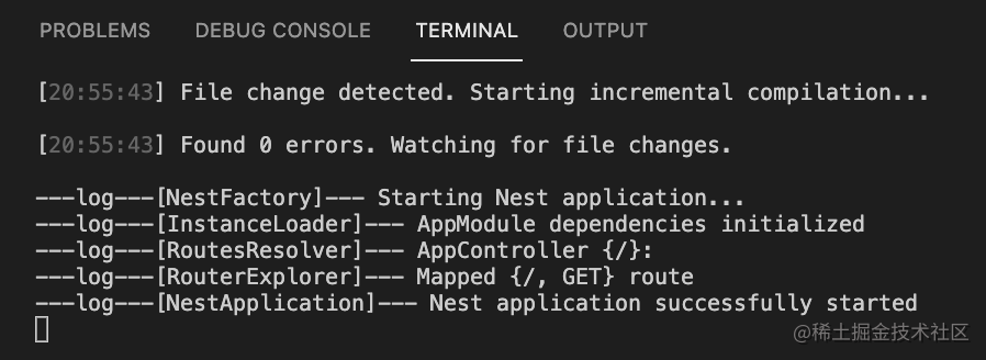 nest new logger-test -p npm进入目录,执行 nest start –watch 把服务跑起来。