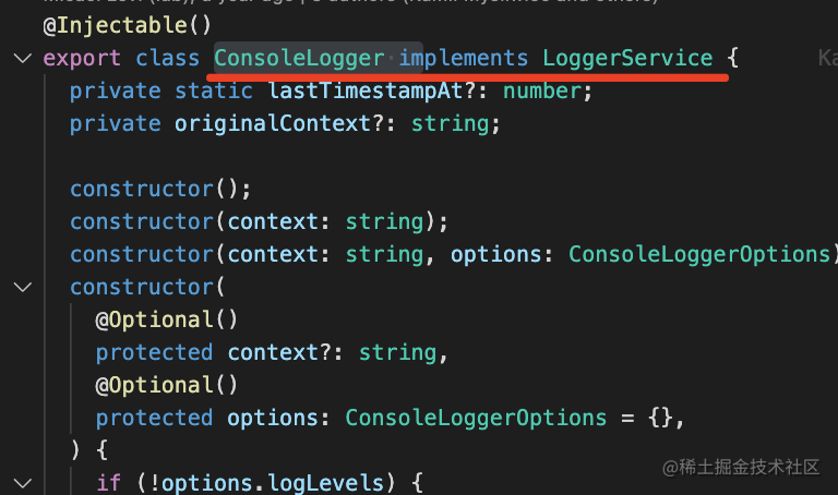 }因为 ConsoleLogger 实现了 LoggerService 接口: