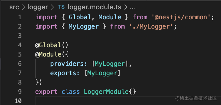在这个模块里可以直接注入 MyLogger,不用 imports 那个 Module。