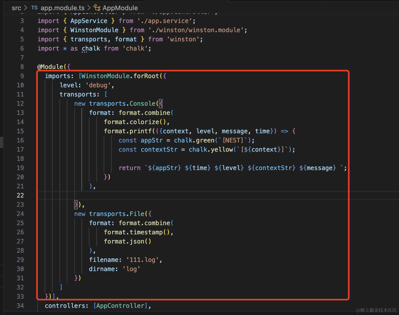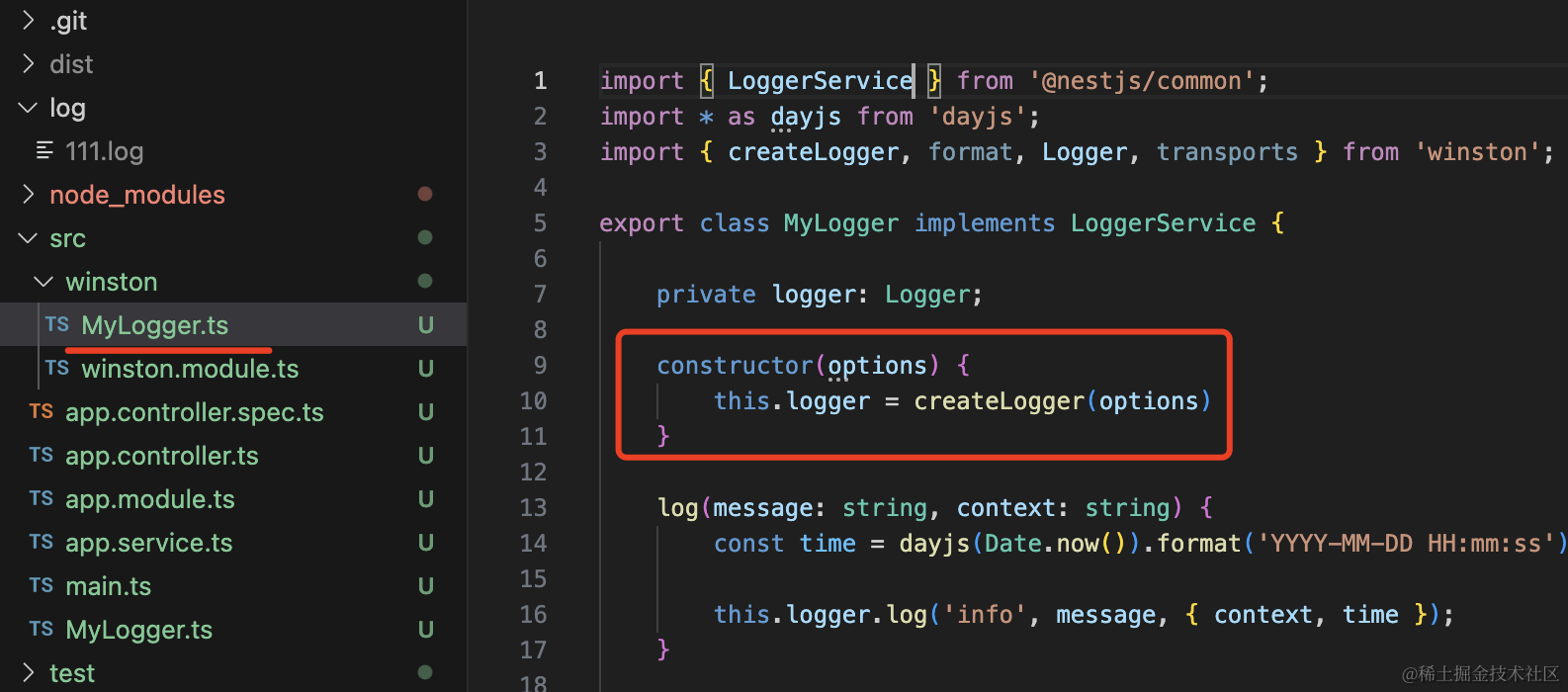 不过项目里没必要自己写,用 nest-winston 就好了。