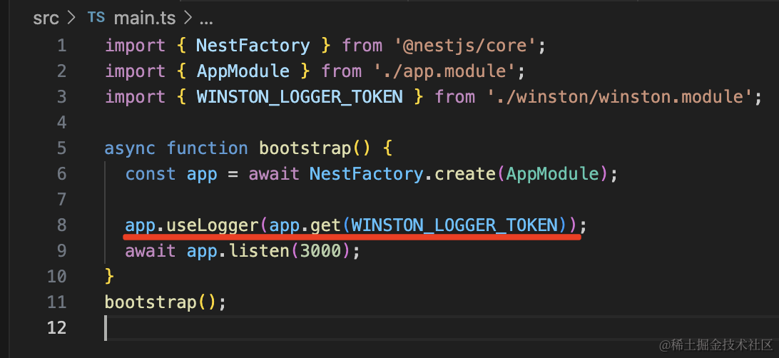 app.useLogger(app.get(WINSTON_LOGGER_TOKEN));功能正常: