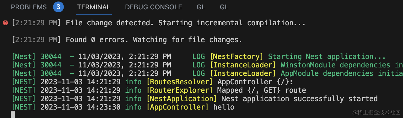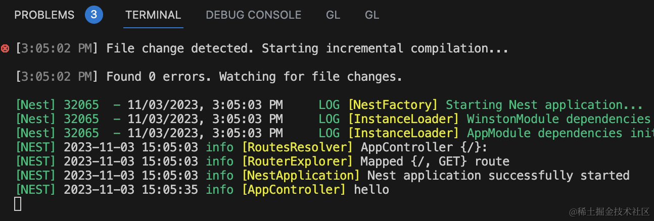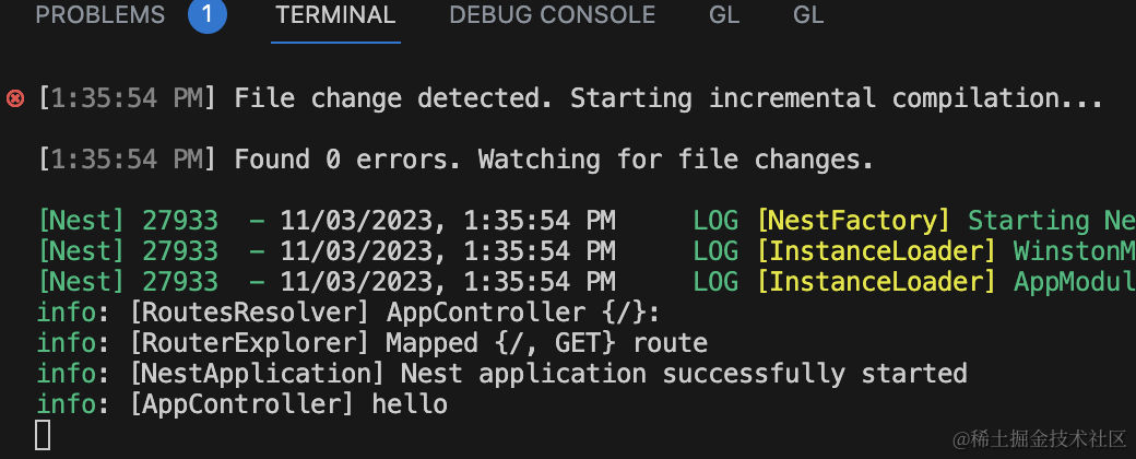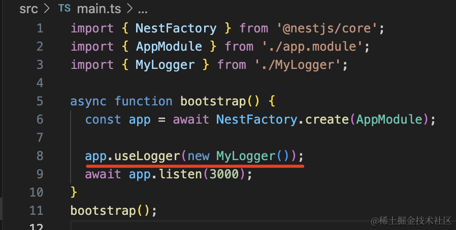 export class AppModule {}之后改一下 main.ts 里用的 logger: