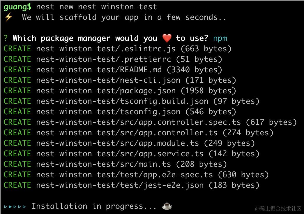 nest new nest-winston-test
