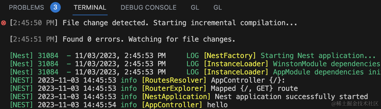只不过和 nest 原本的日志格式不大一样。