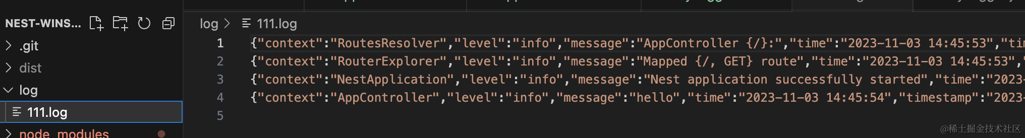这样,我们就完成了 nest 和 winston 的集成。