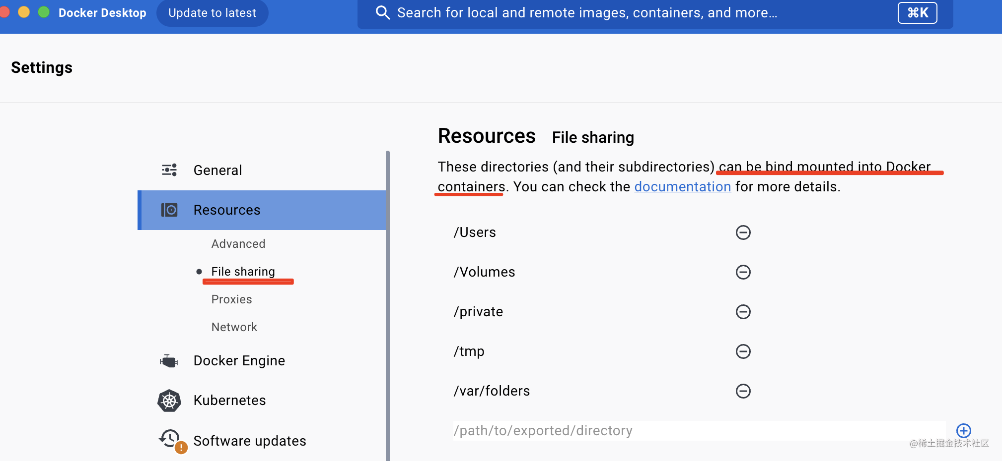 如果你挂载某些目录报错,是因为 docker desktop 挂载的目录是需要配置的,在 Settings > Resources > File Sharing 里加一下就行: