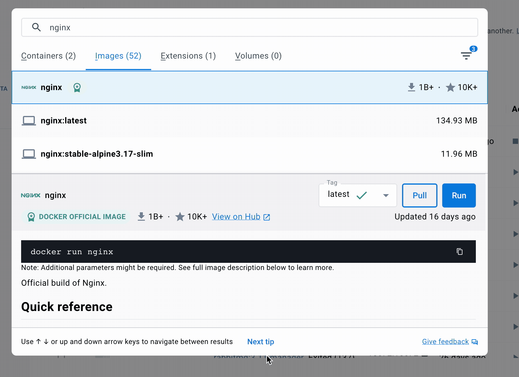 比如我们点击 pull 按钮,就相当于执行了 docker pull:
