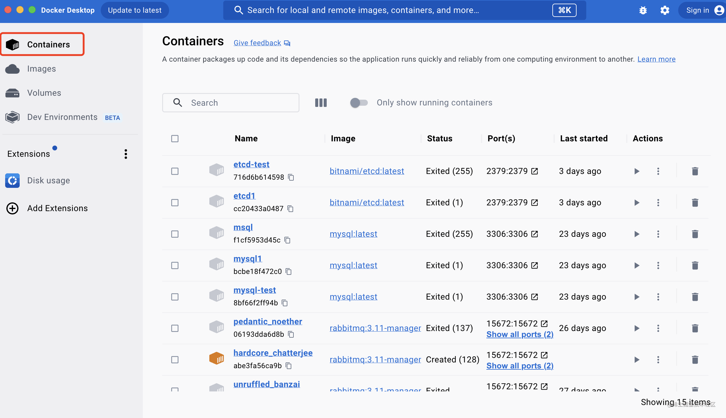 都可以通过 docker desktop 很方便的操作