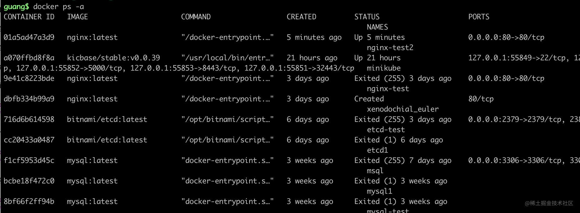 这个界面可以用 docker ps 来获取: