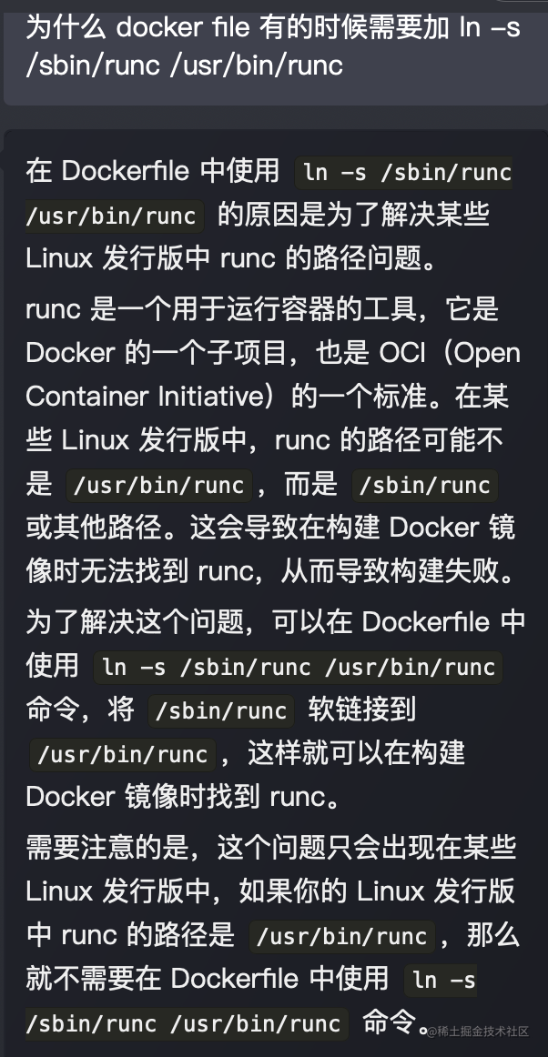 RUN ln -s /sbin/runc /usr/bin/runc