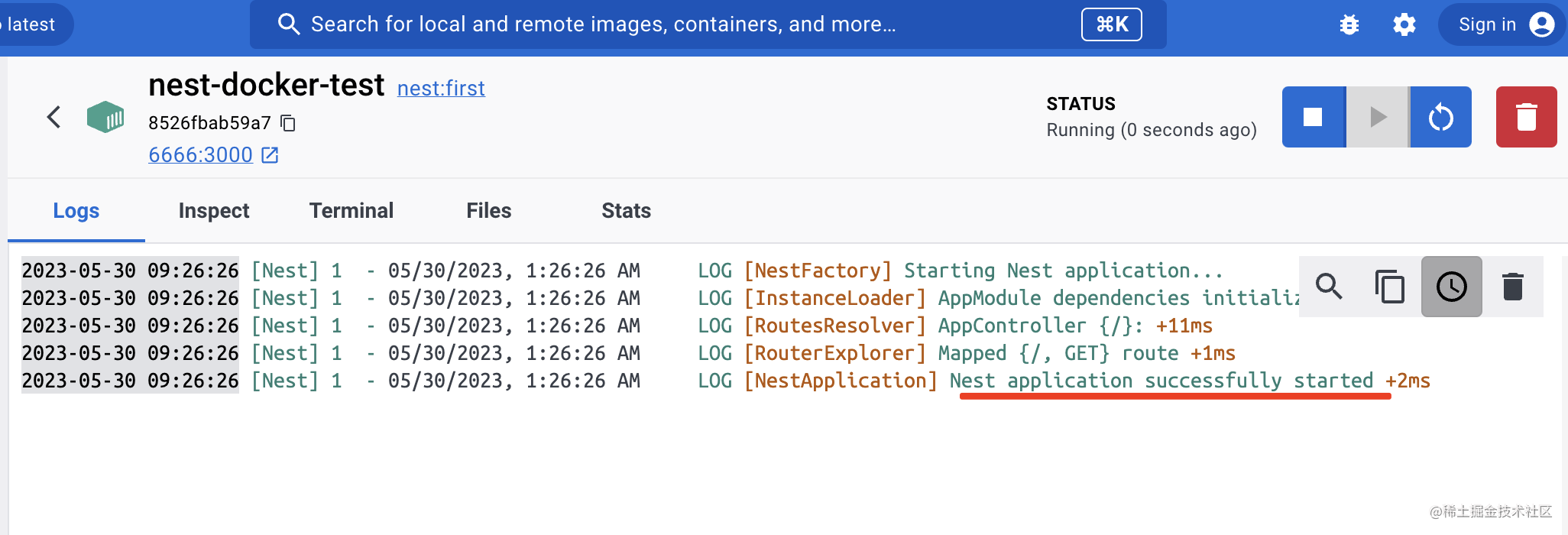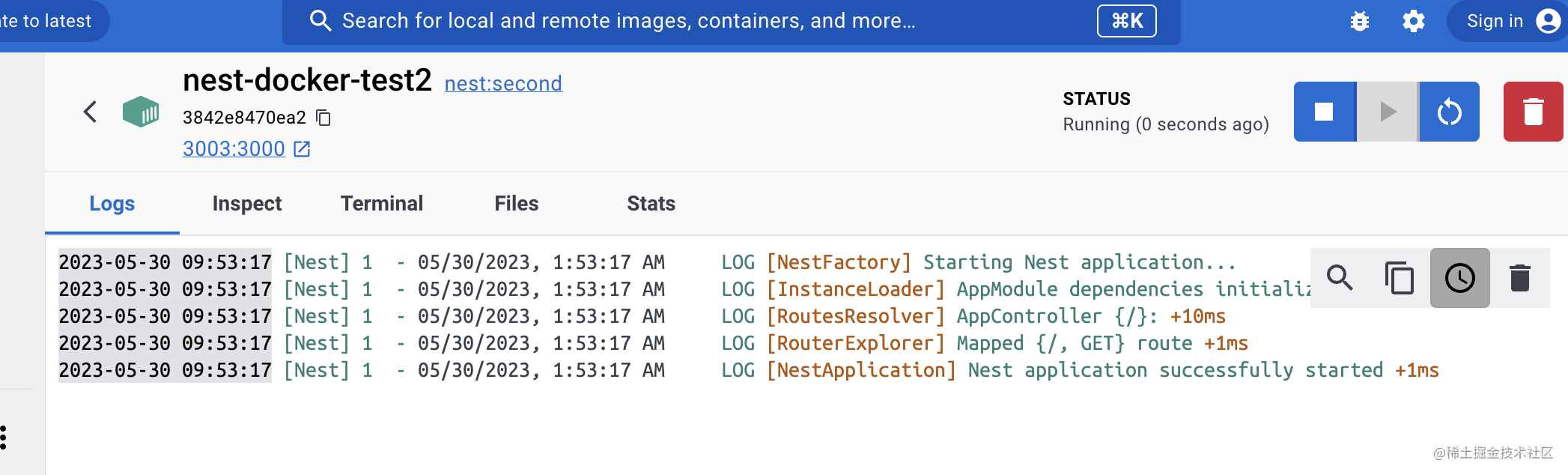 这样我们就用 docker 把我们的 nest 应用跑起来了!
