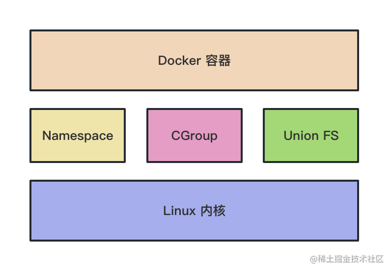 Namespace 做资源隔离,Control Group 做容器的资源限制,UnionFS 做文件系统的分层镜像存储、镜像合并。