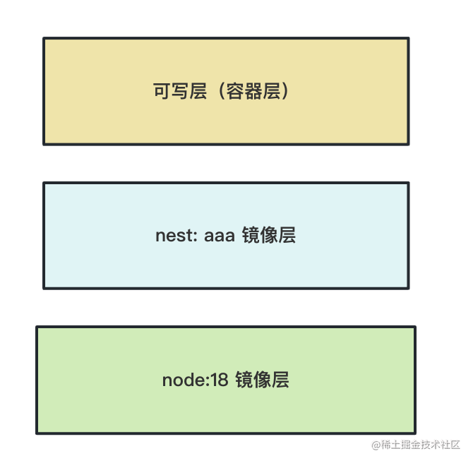 因为容器跑起来会给他多加一个可写层,或者叫容器层: