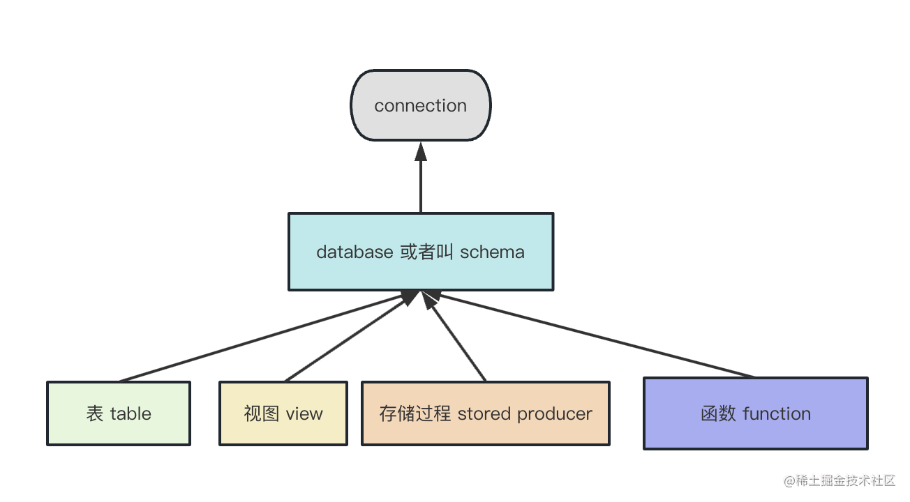 (从 MySQL5.0 开始,官方文档中开始使用 schema 来代替 database 来描述 MySQL 中的数据库。但是,实际上 MySQL 中的数据库仍然可以使用 database 来称呼,两者是等价的)