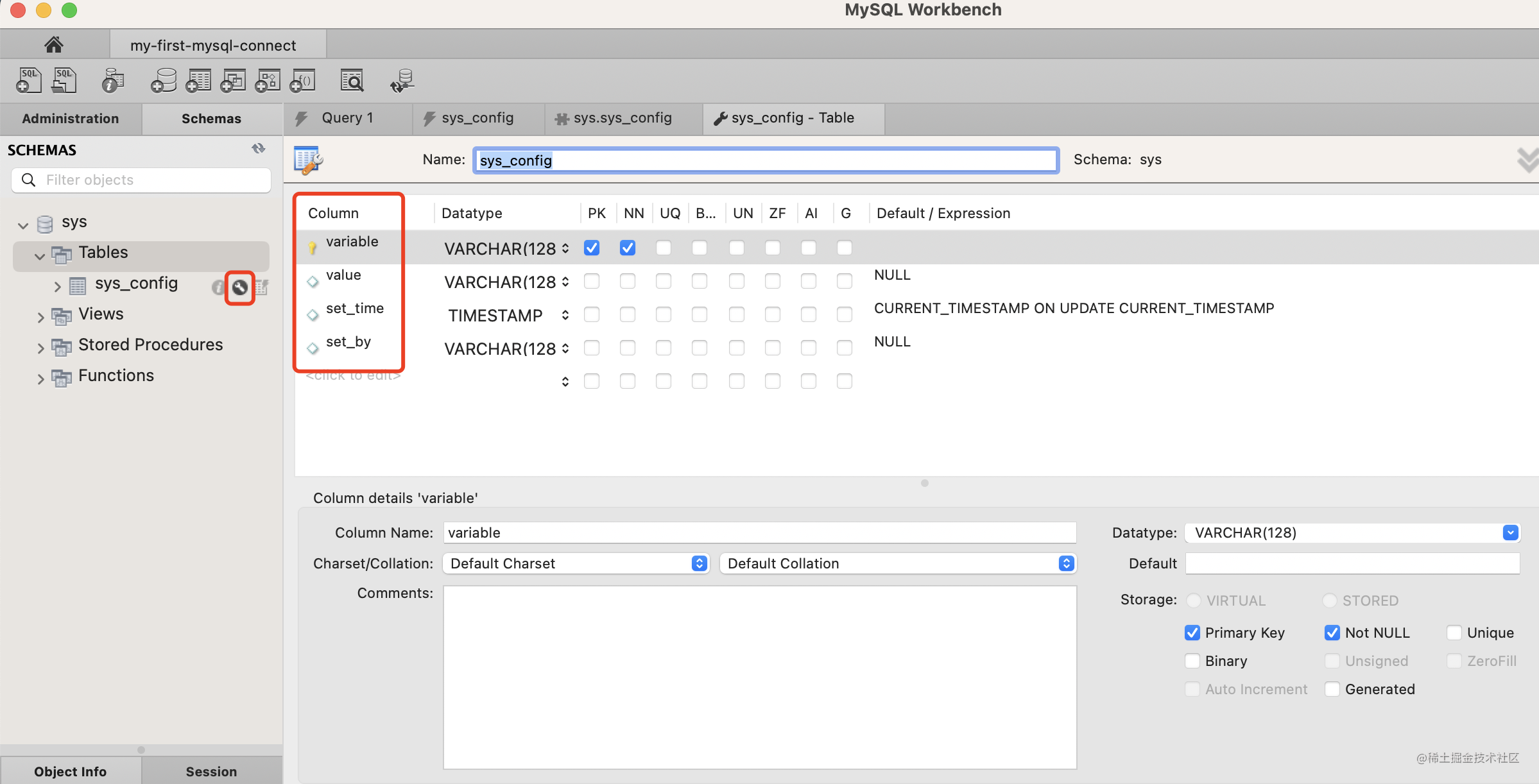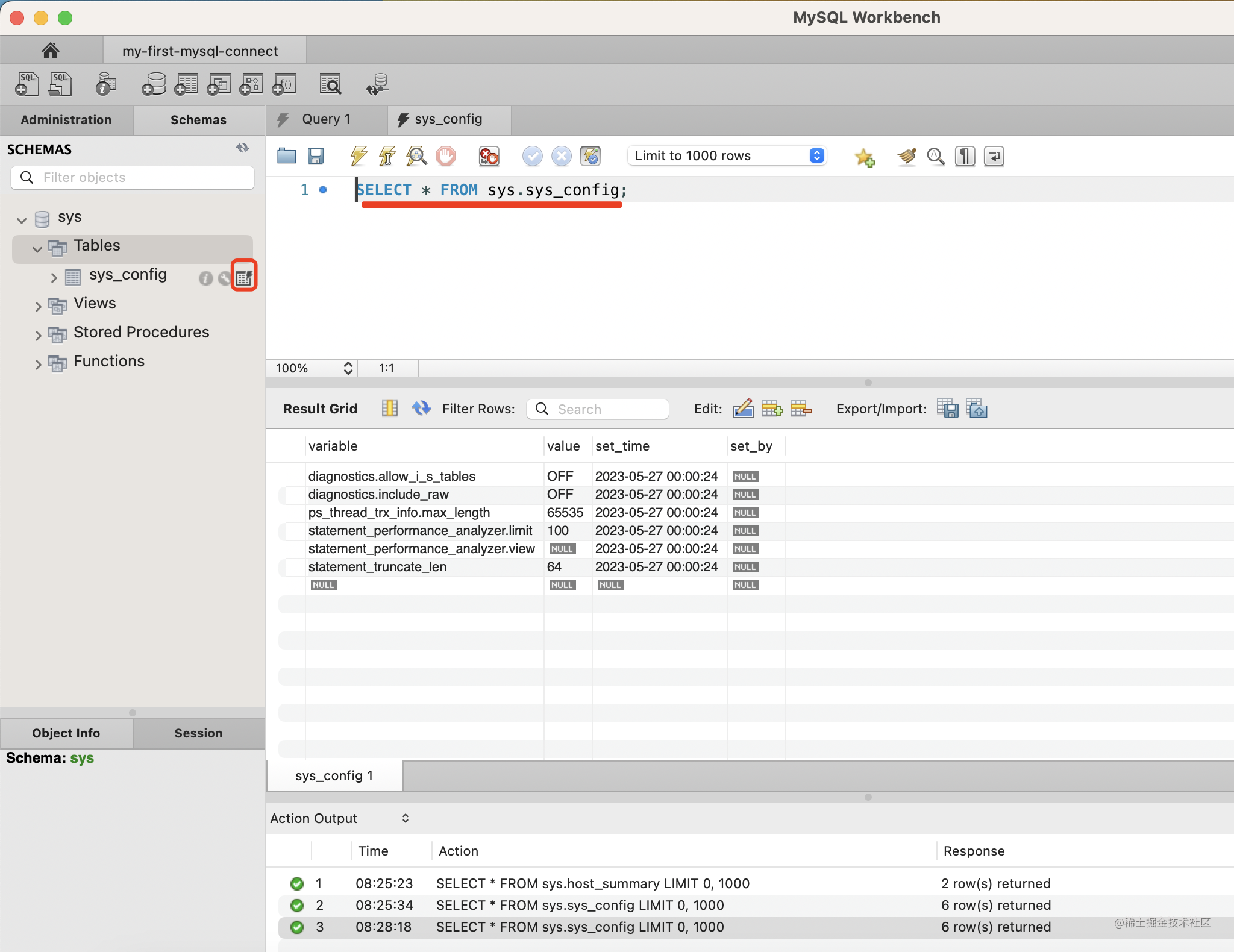 我们先点击这个图标看一下 sys_config 表中的数据: