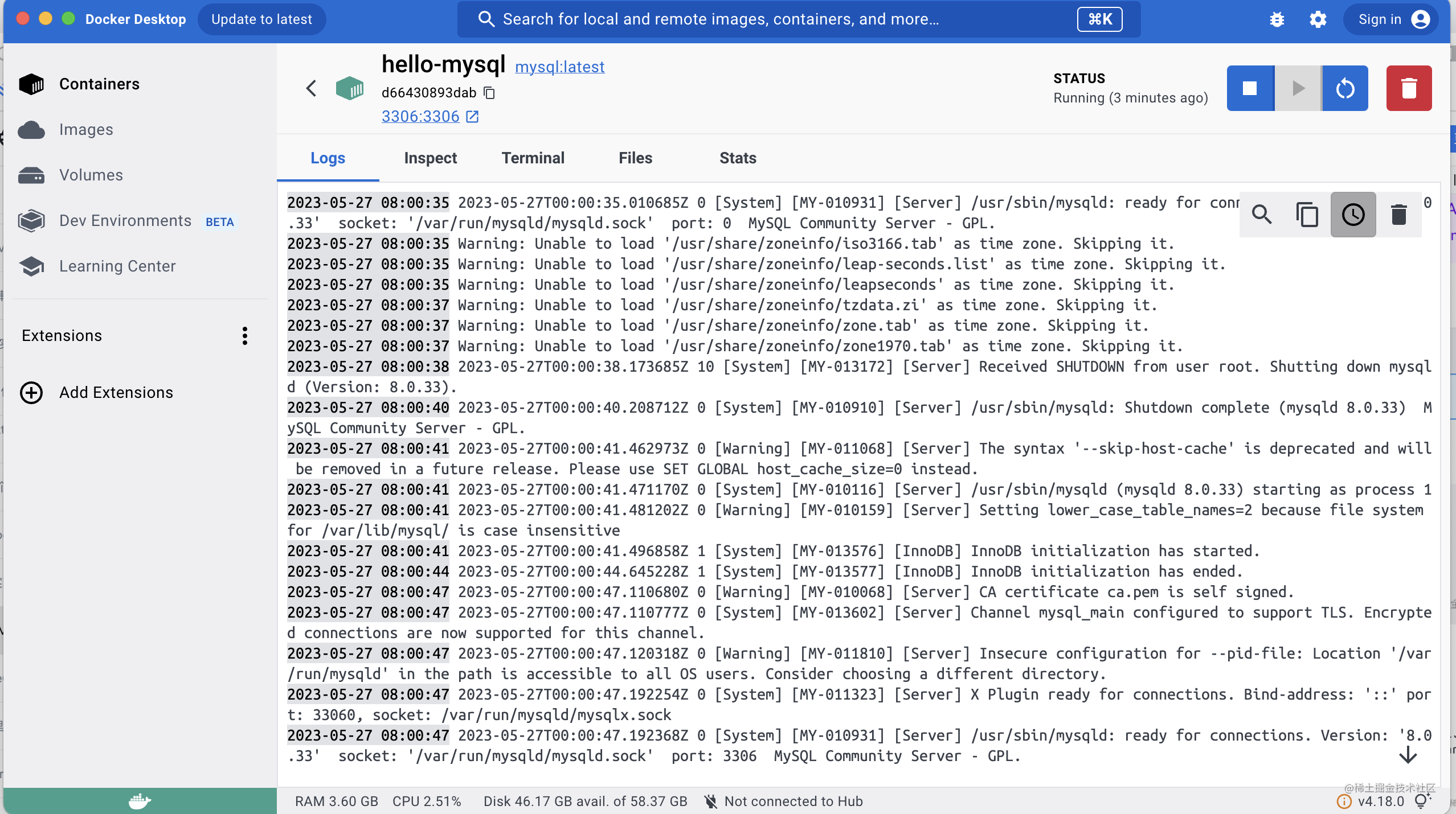 通过 Docker Desktop 查询下 MySQL 的镜像: