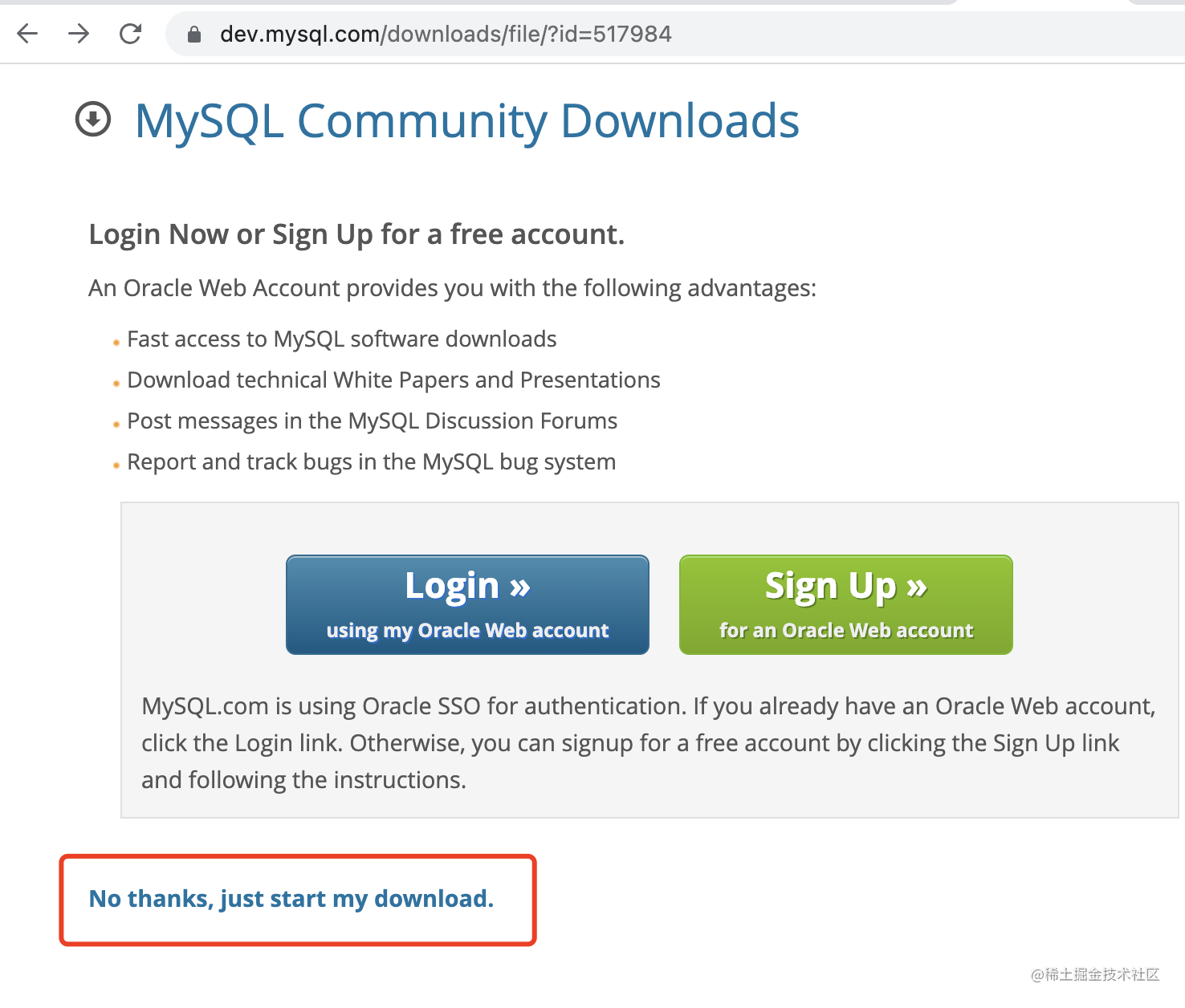 它会让你登录,你可以点下面的 no thanks,直接开始下载: