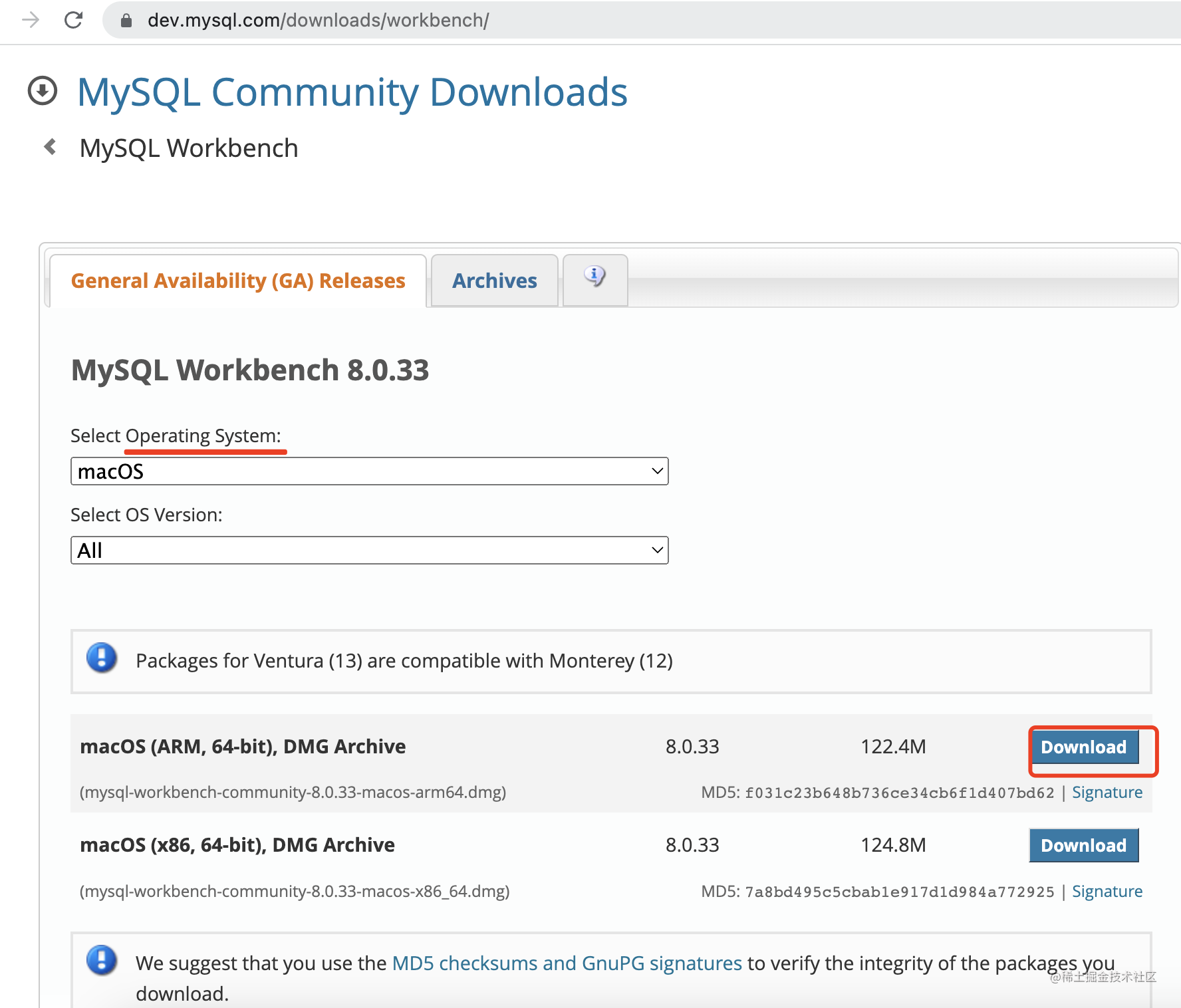 选择你的操作系统版本和 cpu 架构对应的安装包,点击 download: