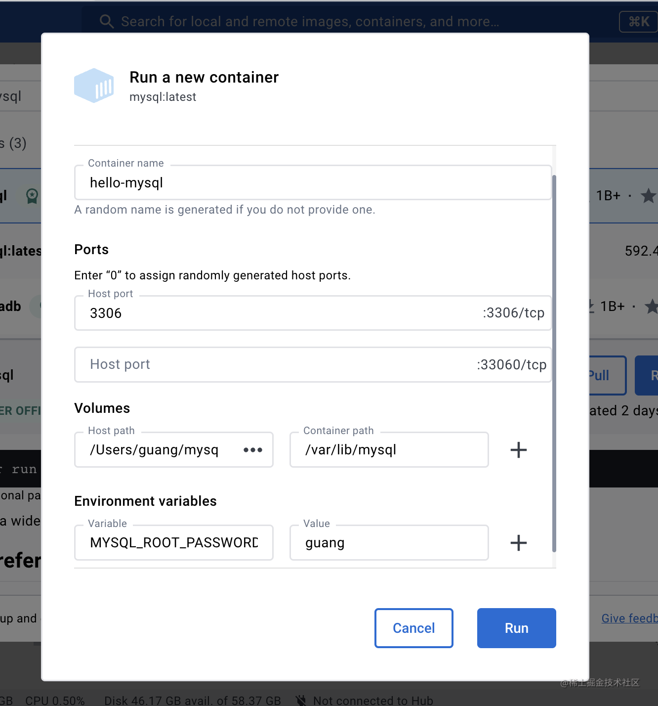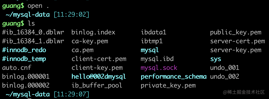 (这里的 /Users/guang/mysql 是我本地的一个目录,任意目录都行。在 windows 下就是 D://xxx/xx 的形式)