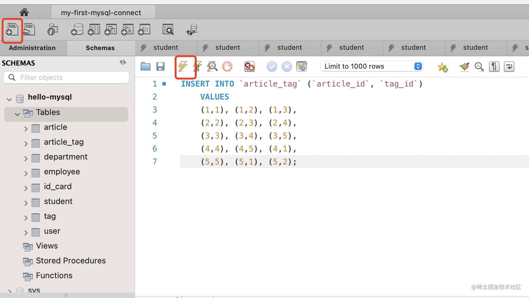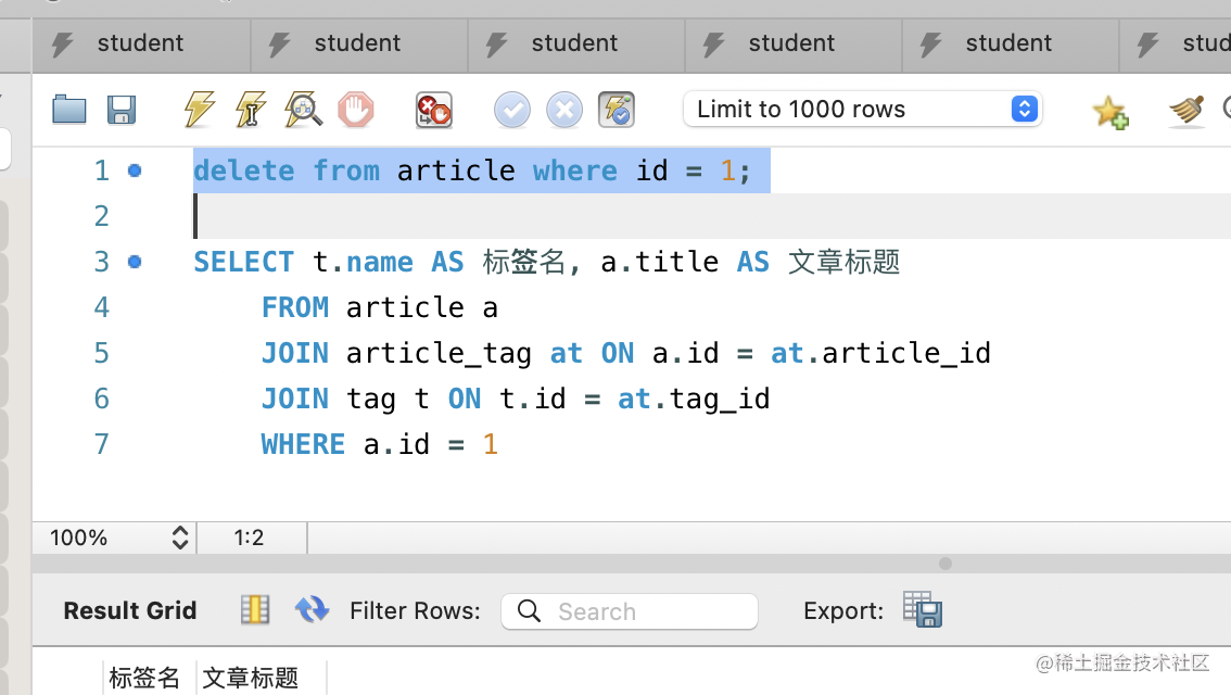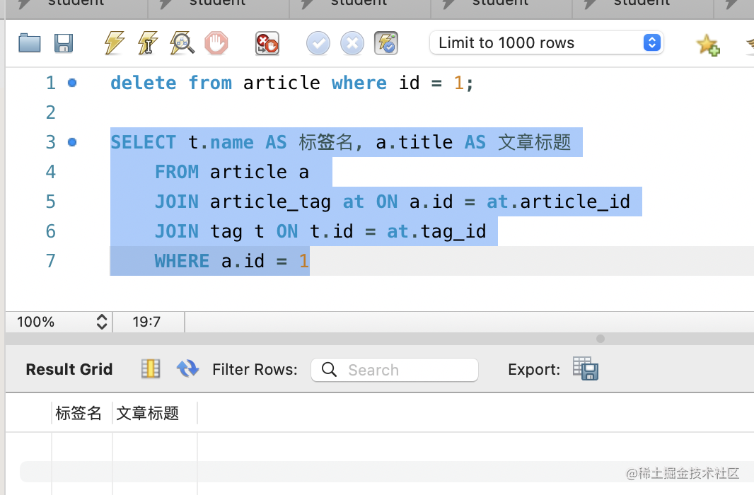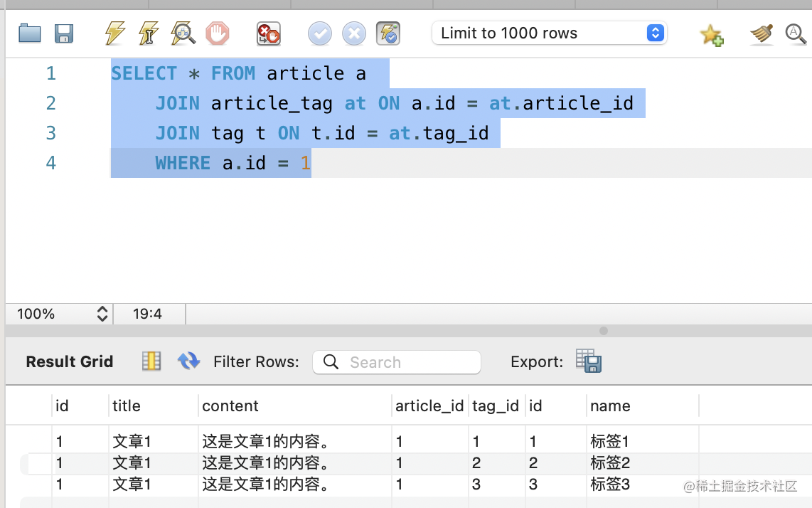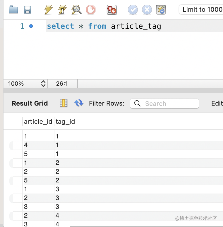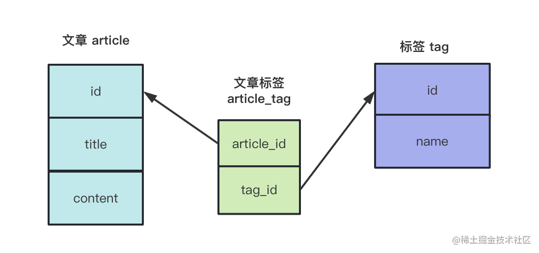 那现在有了 article、tag、article_tag 3 个表了,怎么关联查询呢?