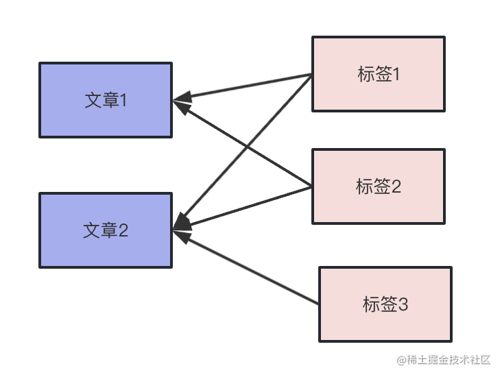 一篇文章可以有多个标签,一个标签可以多篇文章都有。