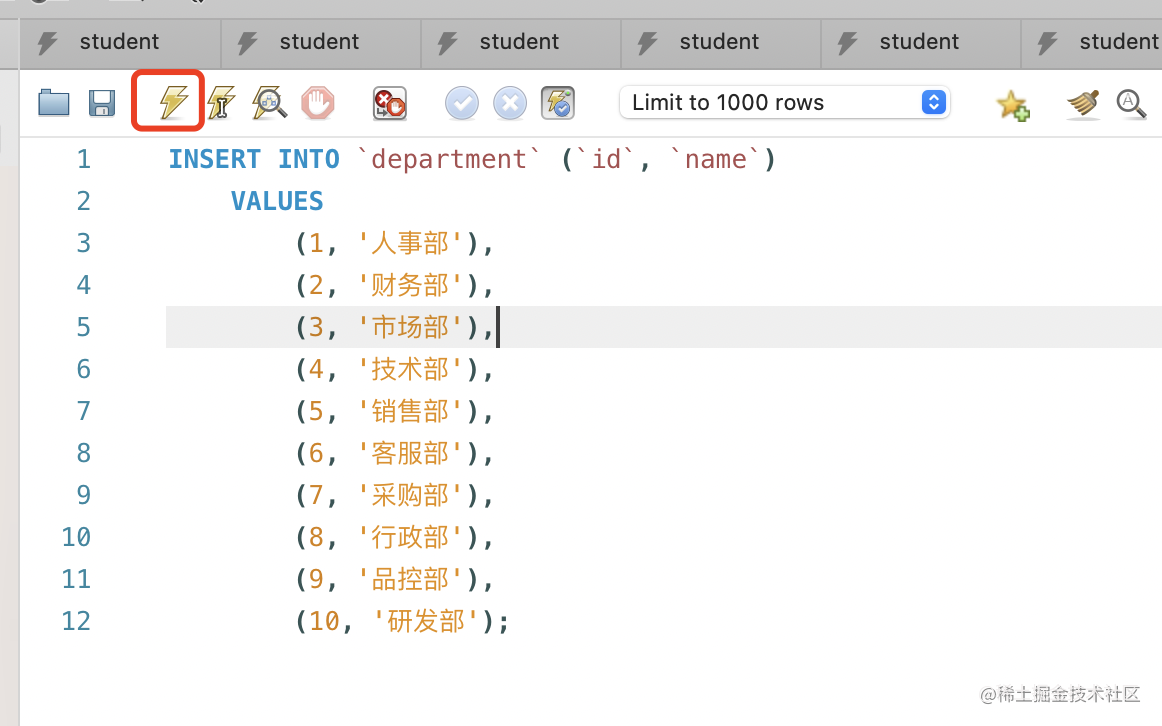 我们往部门表插入几条数据: