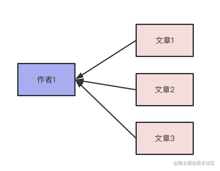 一个作者可以写多篇文章,而每篇文章只属于一个作者。