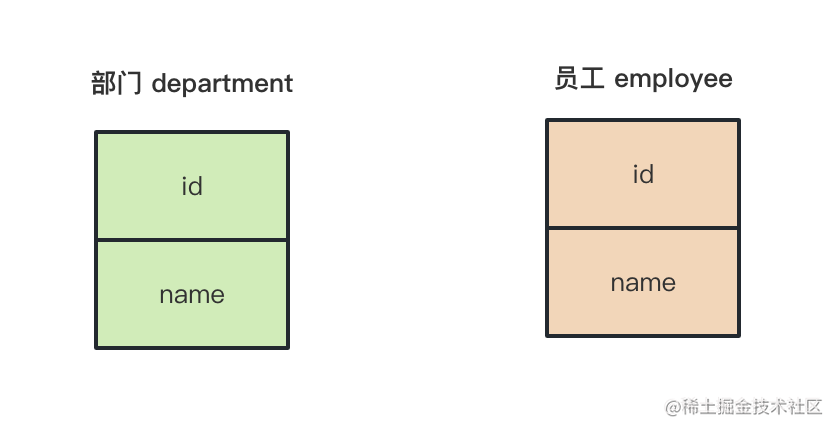 我们会有一个部门表和一个员工表: