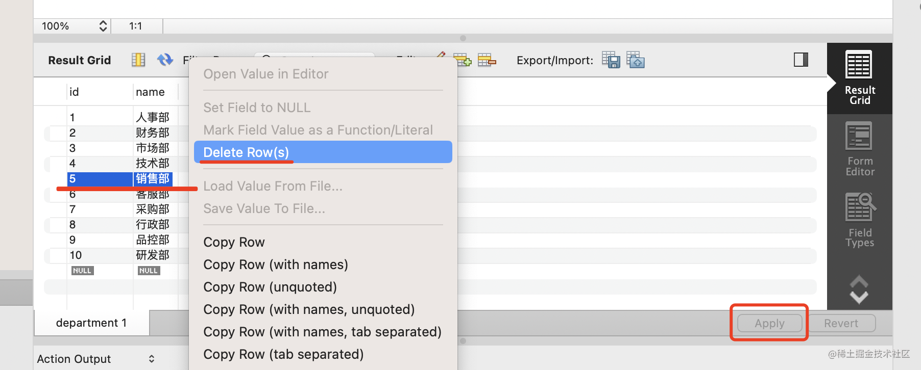点击 apply,可以看到生成的 sql: