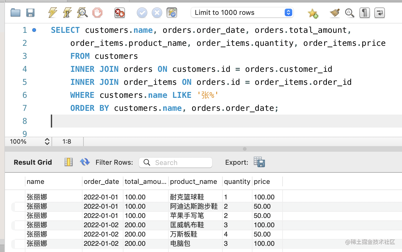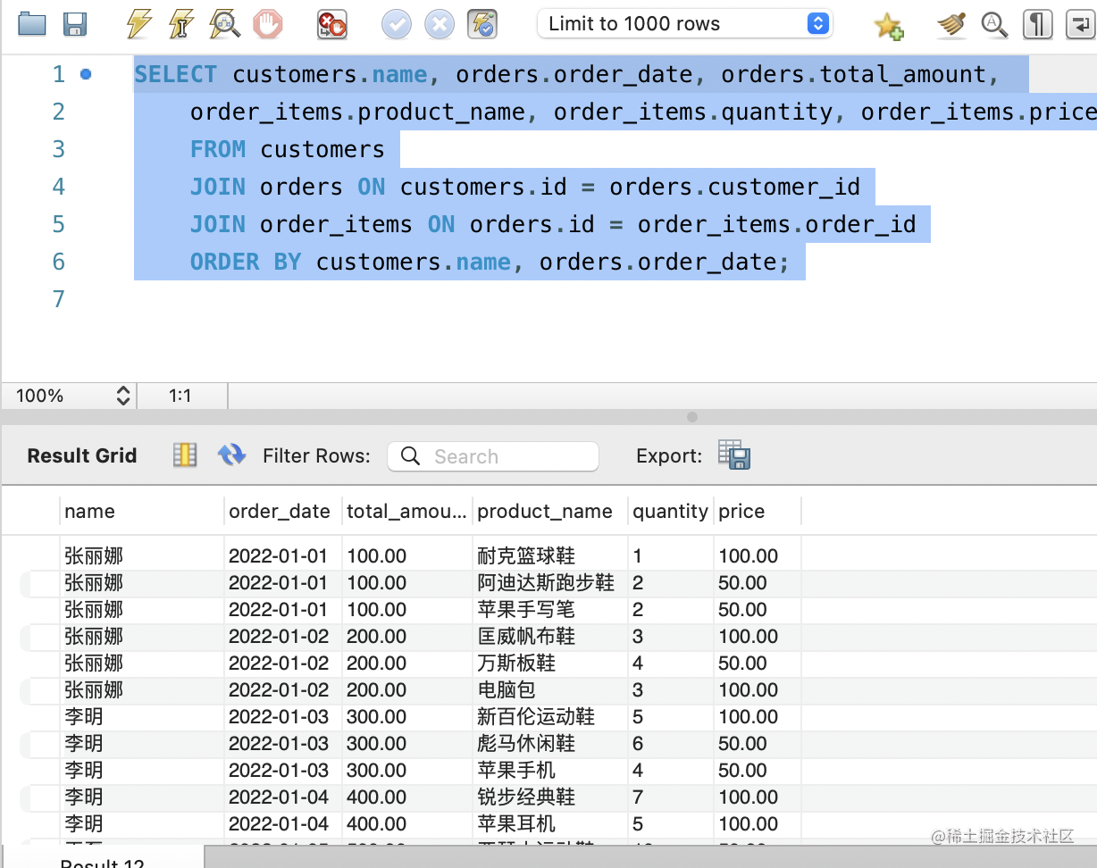 ORDER BY customers.name, orders.order_date;执行下: