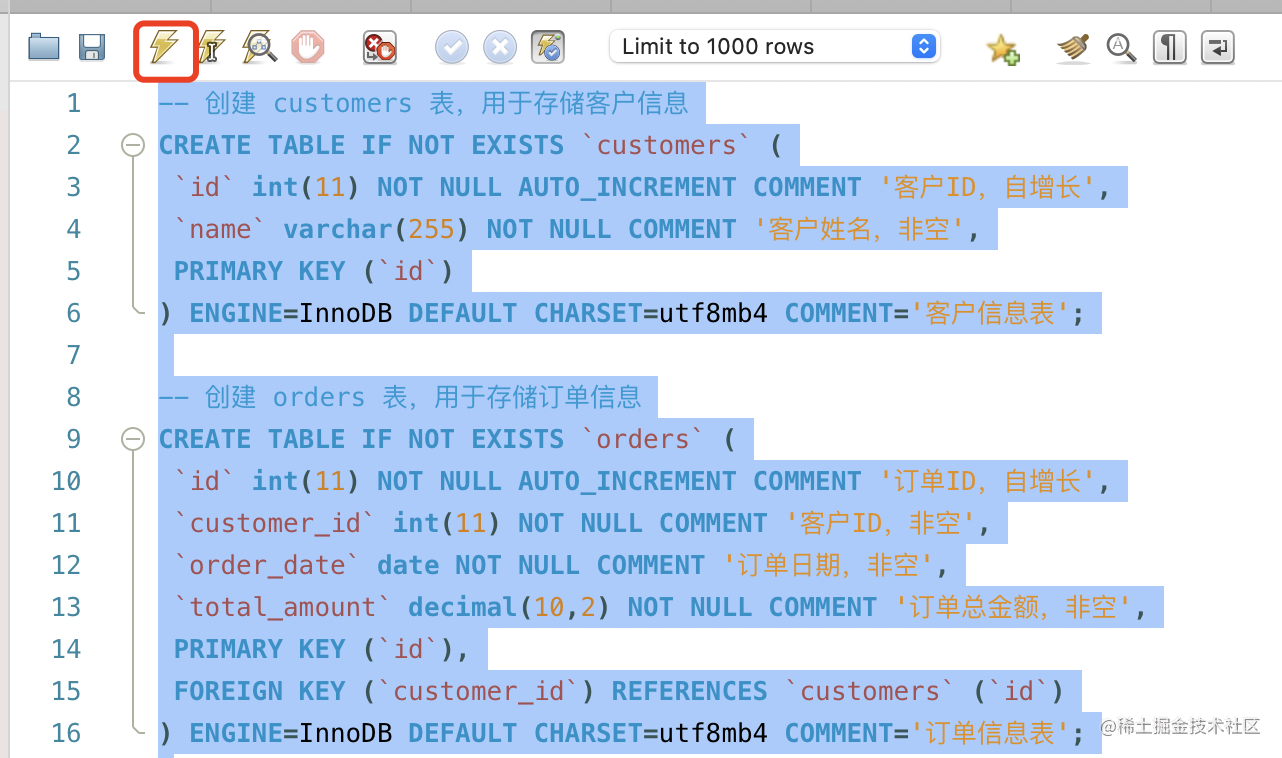 这节我们创建了一个新的 database 并且新增了 customers、orders、order_items 表来练习 sql。