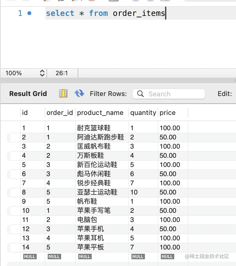 -- 创建 order_items 表,用于存储订单商品信息