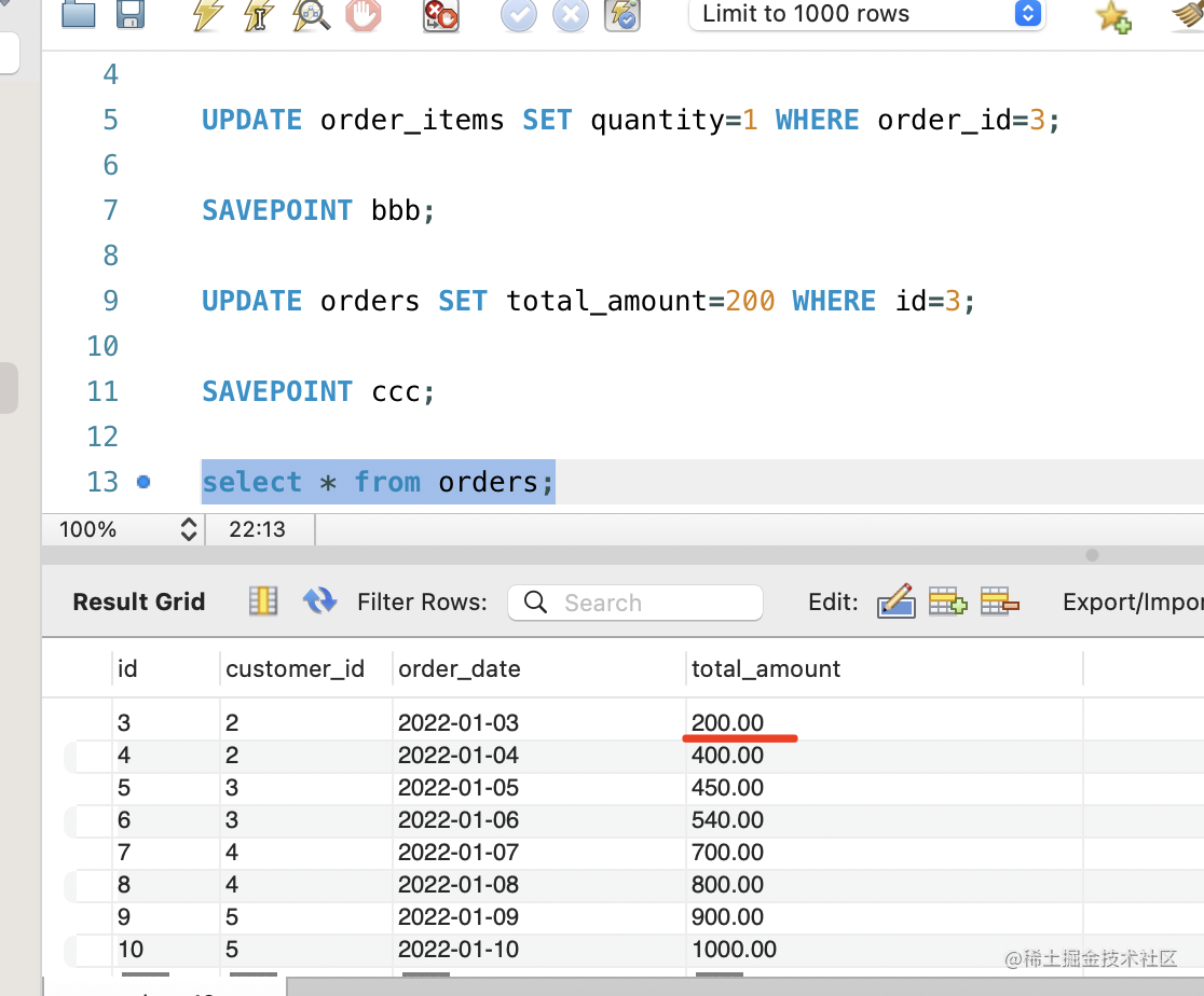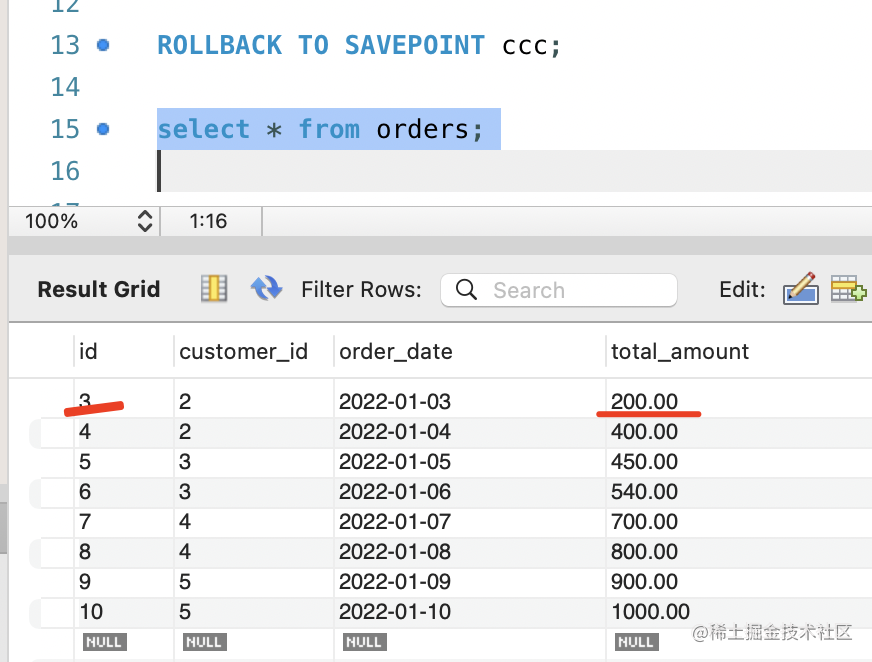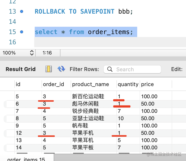 SAVEPOINT ccc;比如我设置了 3 个保存点。