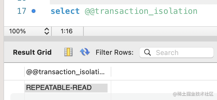 可以这样查询当前的事务隔离级别: