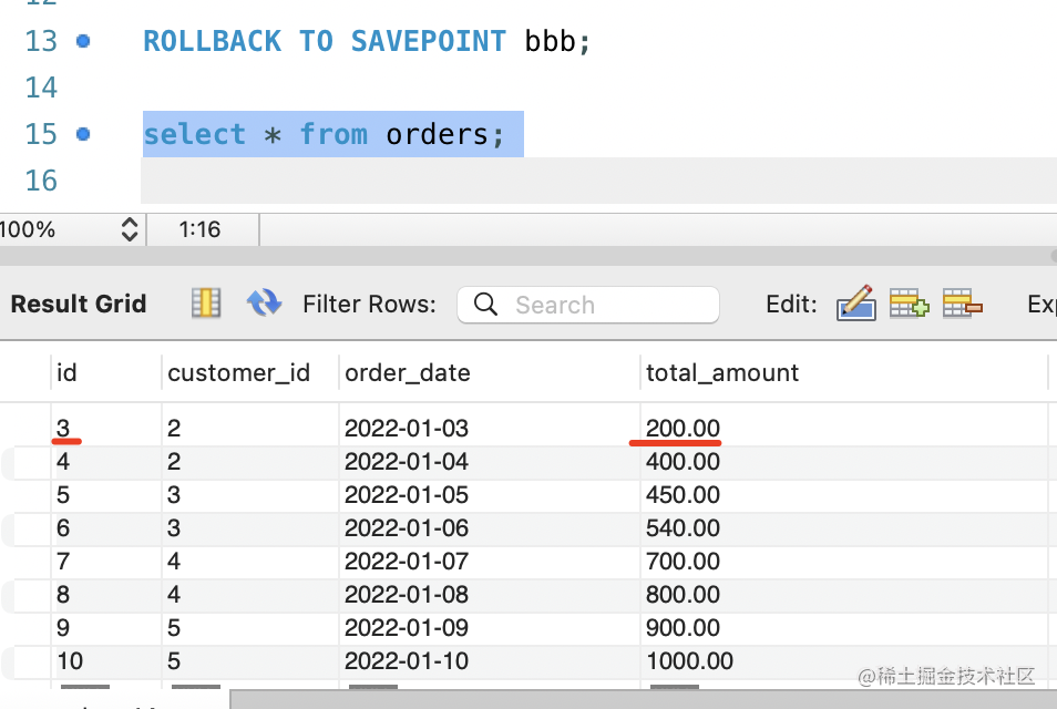 ROLLBACK TO SAVEPOINT bbb;然后再查询下: