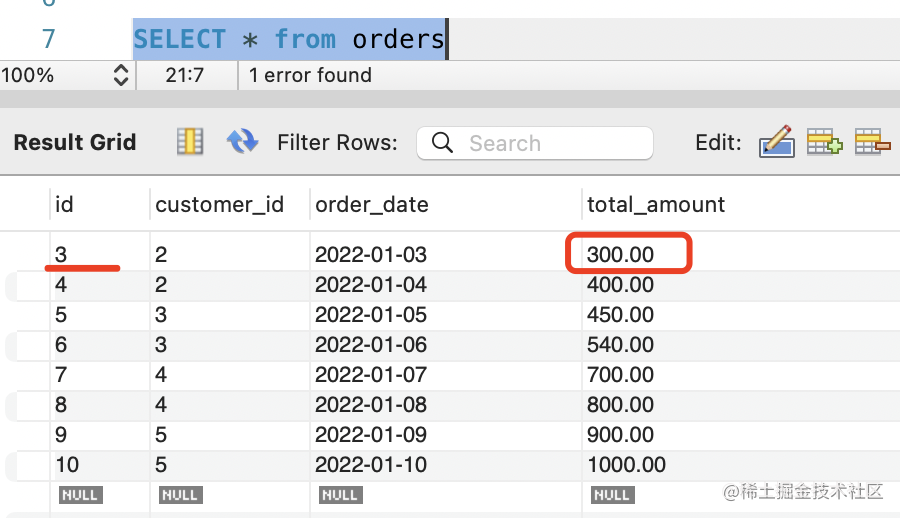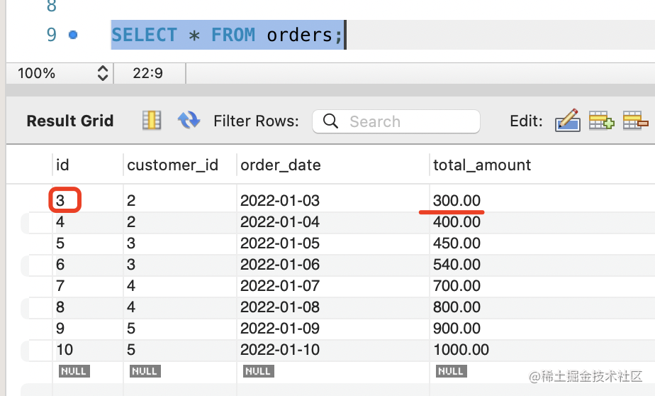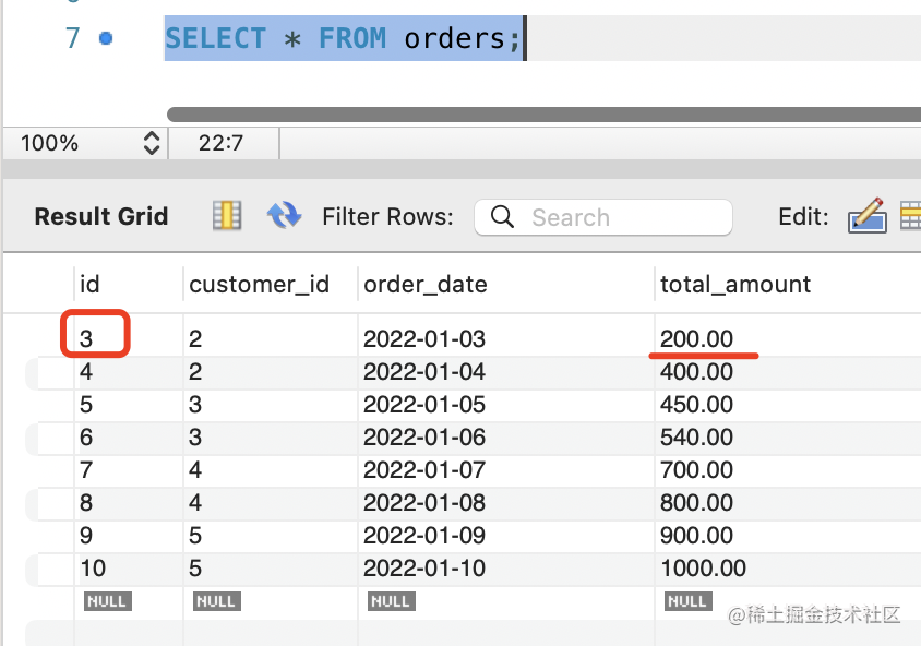 UPDATE orders SET total_amount=200 WHERE id=3;