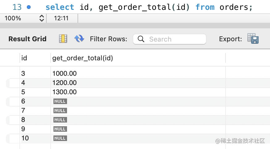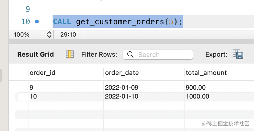 CALL get_customer_orders(5);调用使用 CALL 存储过程(参数) 的形式: