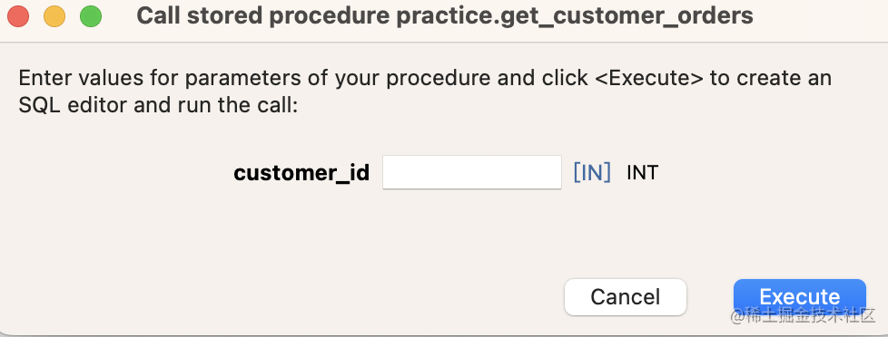存储过程内部执行了一个查询,用到的 customer_id 是参数传入的。